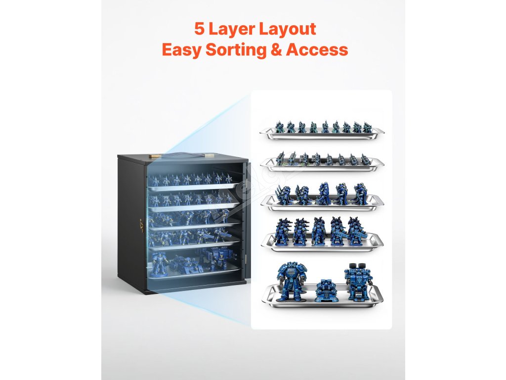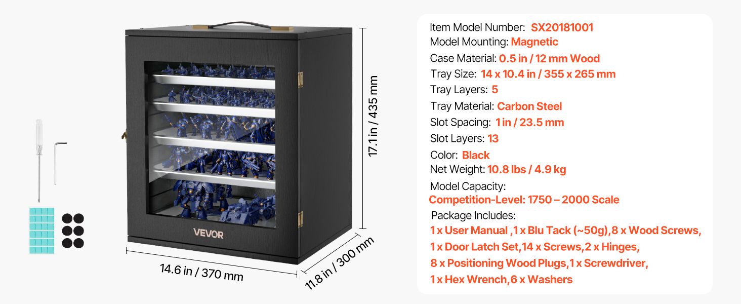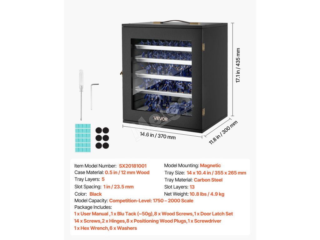 Toto magnetické miniatúrne puzdro obsahuje 5 antikoróznych podnosov a drevené telo s hrúbkou 0,5 palca / 12 mm. Získate pevnú konštrukciu, ktorá odolá nárazom a odreninám, aby pomohla zabezpečiť modely na cestách.