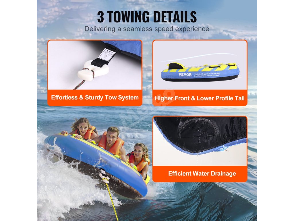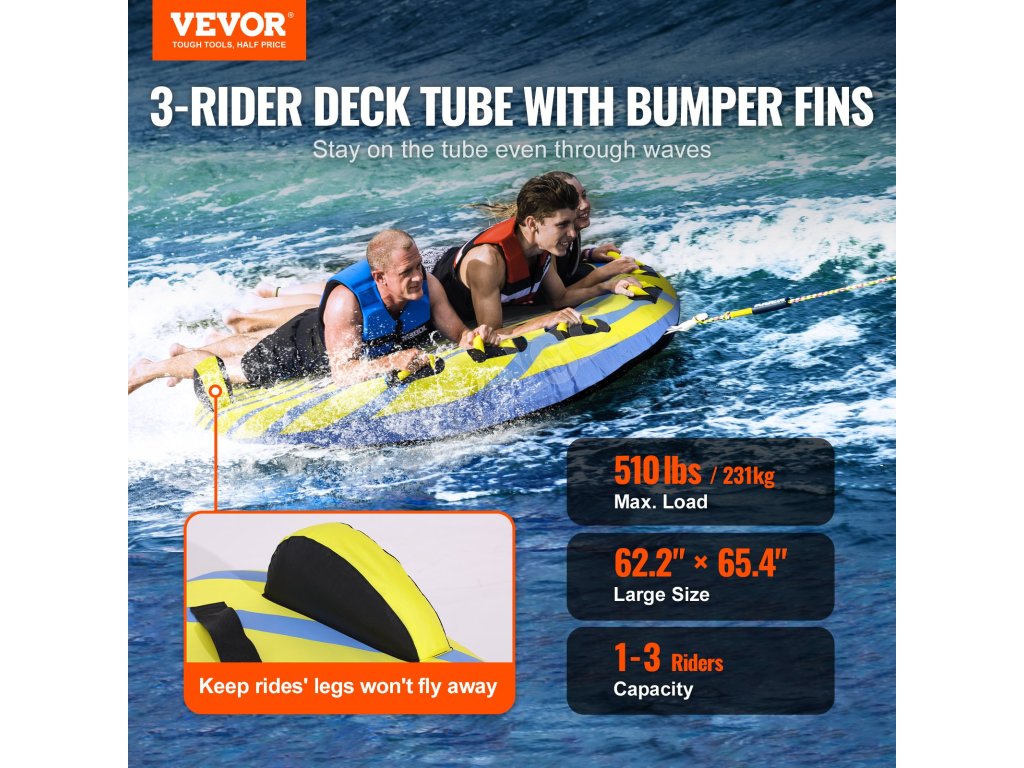 Podeľte sa o vzrušujúce spomienky so svojimi spoločníkmi na našom člne pre 3 osoby. Obe strany plutiev na ťahacom tubuse na člnkovanie udržia jazdcov na strede ťahacieho tubusu. Vy a vaša rodina sa budete cítiť bezpečne a pohodlne.