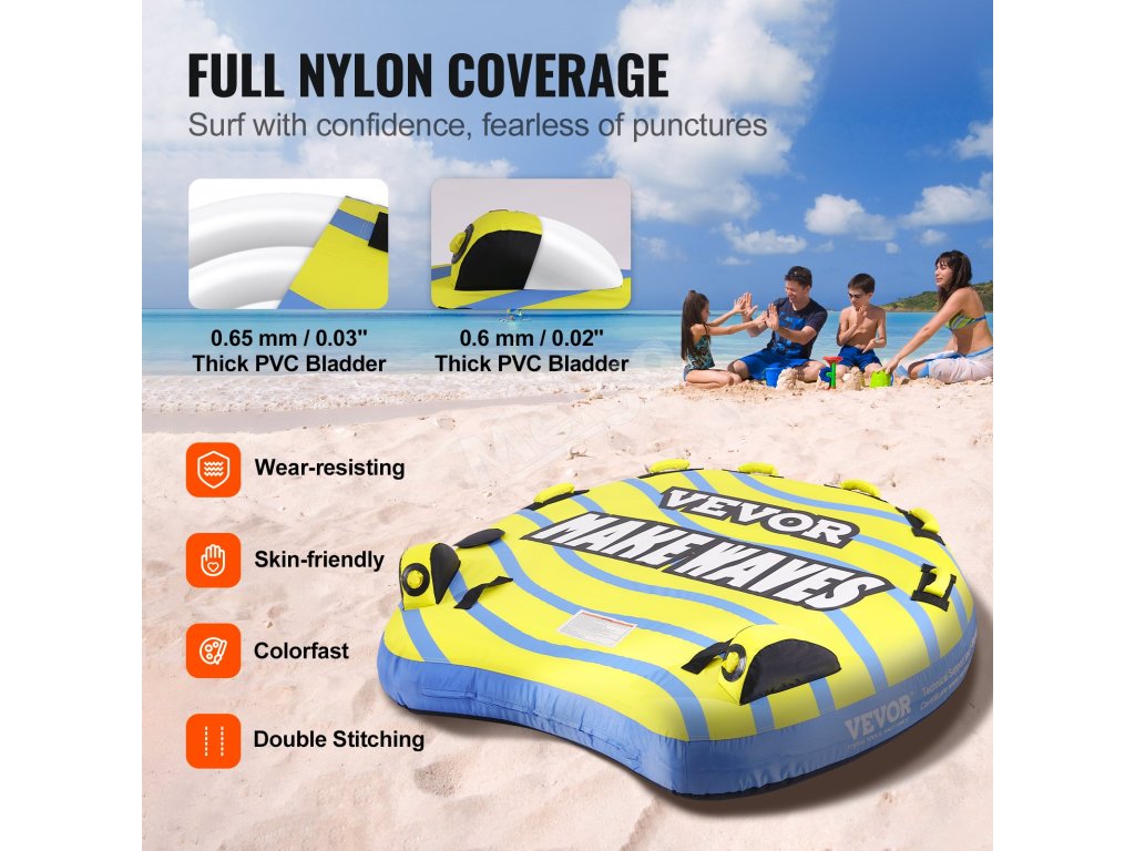 Vydajte sa na vzrušujúce dobrodružstvo na mori s naším nafukovacím ťažným tubusom! Potiahnuté sú odolnou nylonovou tkaninou 840D a 420D, vnútorné rúrky sú vyrobené z PVC 0,03"/0,65 mm a bočné rúrky sú vyrobené z PVC 0,02"/0,6 mm. Naše lodné tuby a ťahače sú navrhnuté tak, aby poskytovali dlhodobú radosť.