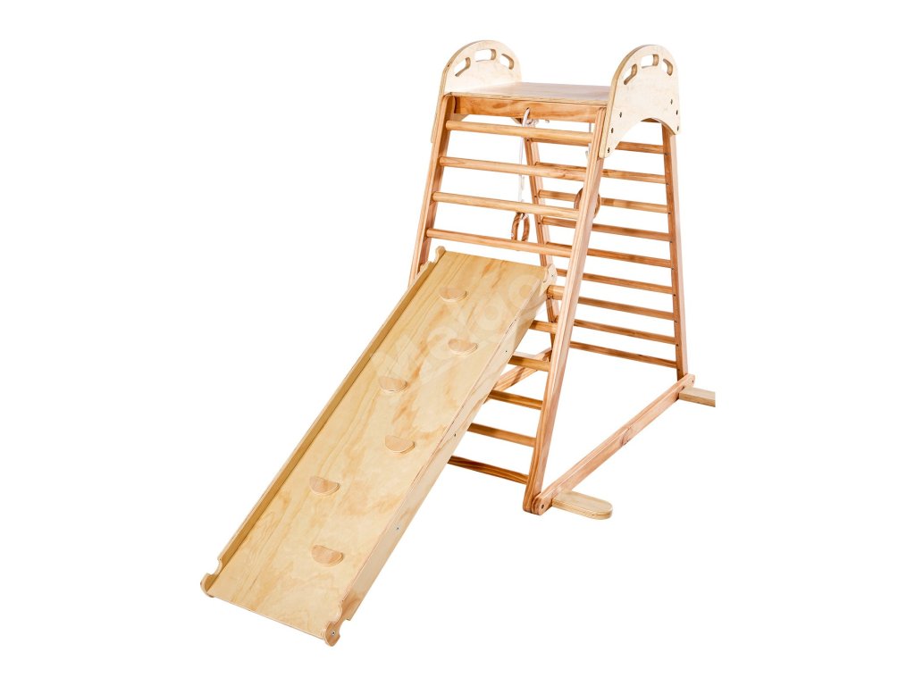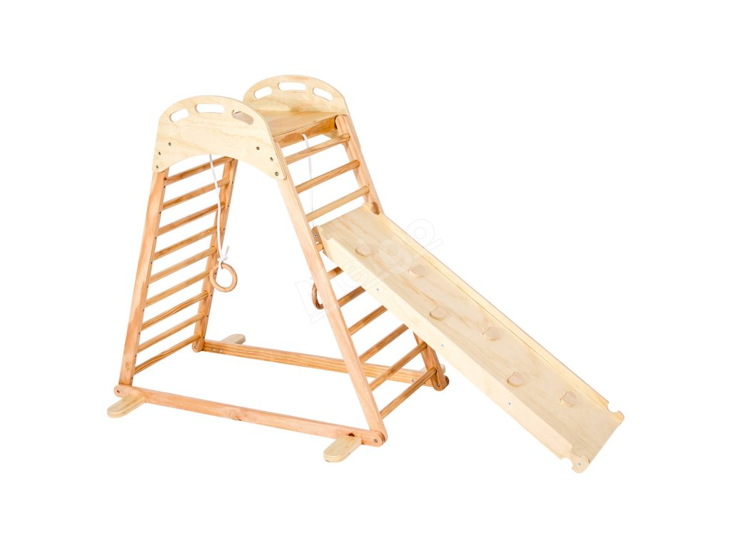 Detské drevené ihrisko 4v1 so skluzavkou, lezením a krúžkami, 100KG