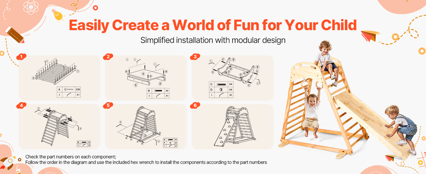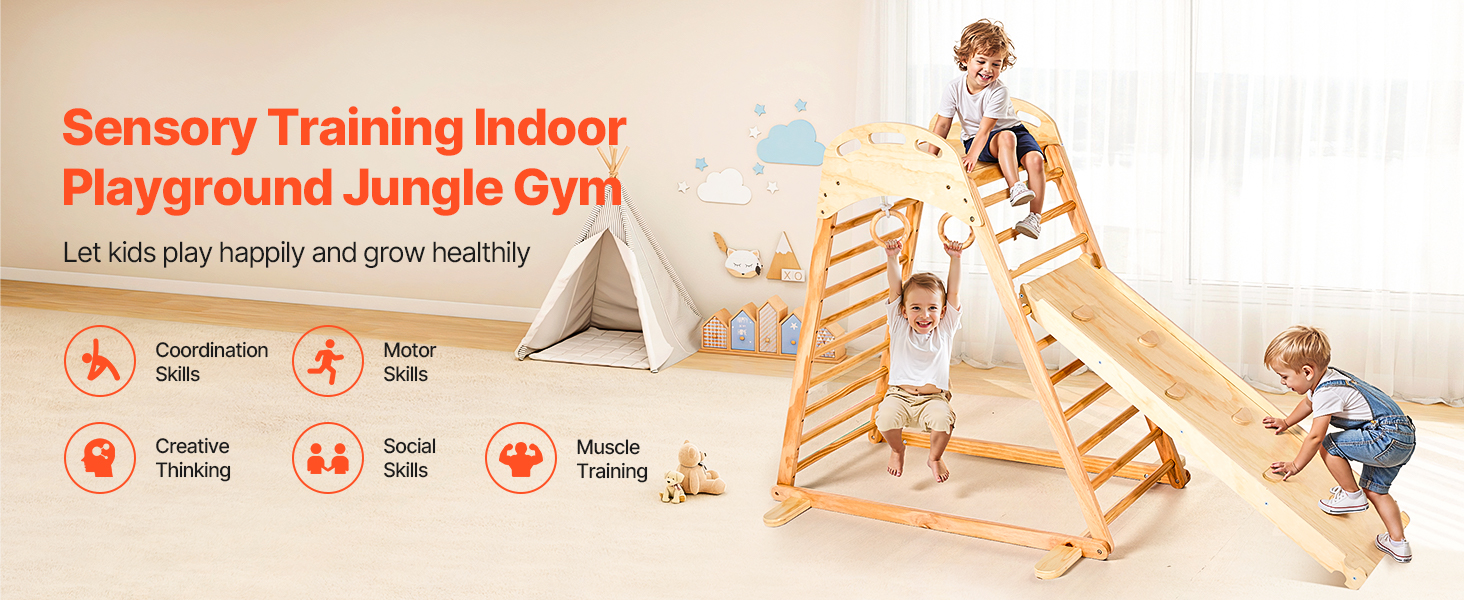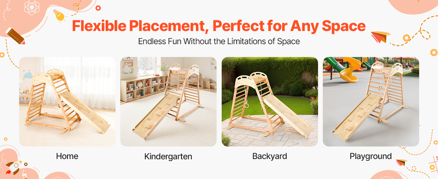 Naša herná zostava VEVOR pre vnútorné ihrisko na lezenie je ideálna na detské ihriská, do dvorov, domov a materských škôl. Hodí sa do rôznych priestorov a okamžite ich premení na zábavnú a pútavú hraciu zónu pre vaše dieťa.