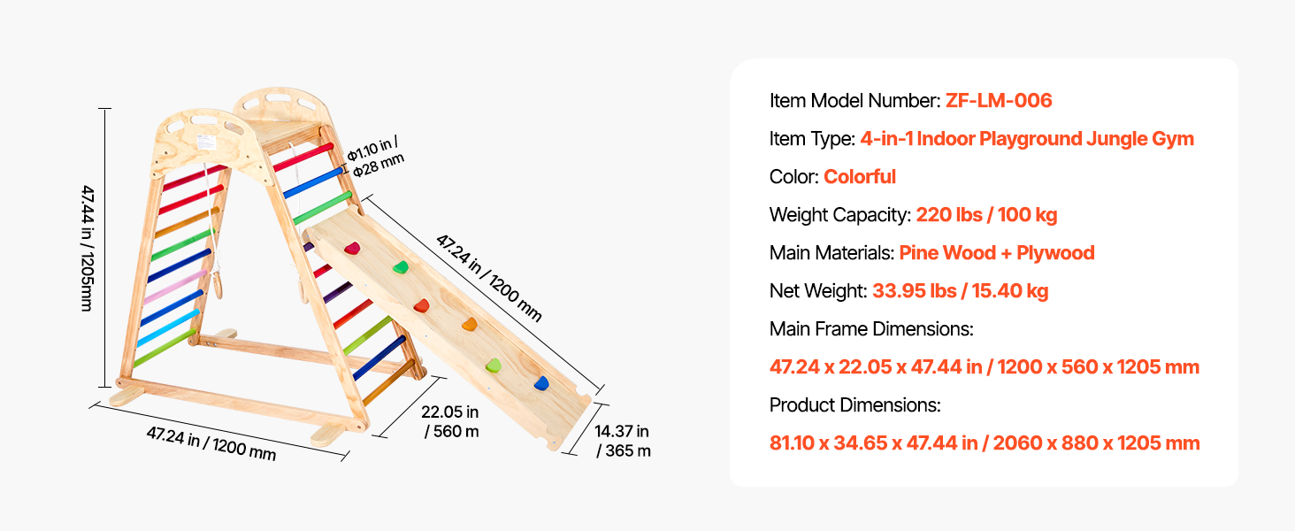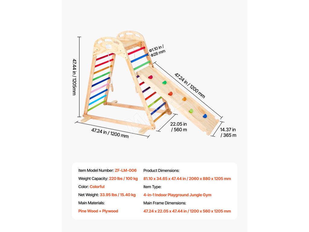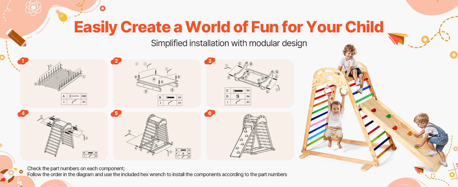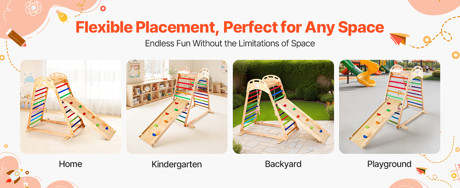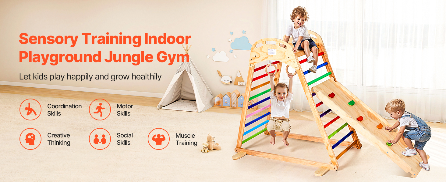 Naša herná zostava VEVOR pre vnútorné ihrisko na lezenie je ideálna na detské ihriská, do dvorov, domov a materských škôl. Hodí sa do rôznych priestorov a okamžite ich premení na zábavnú a pútavú hraciu zónu pre vaše dieťa.