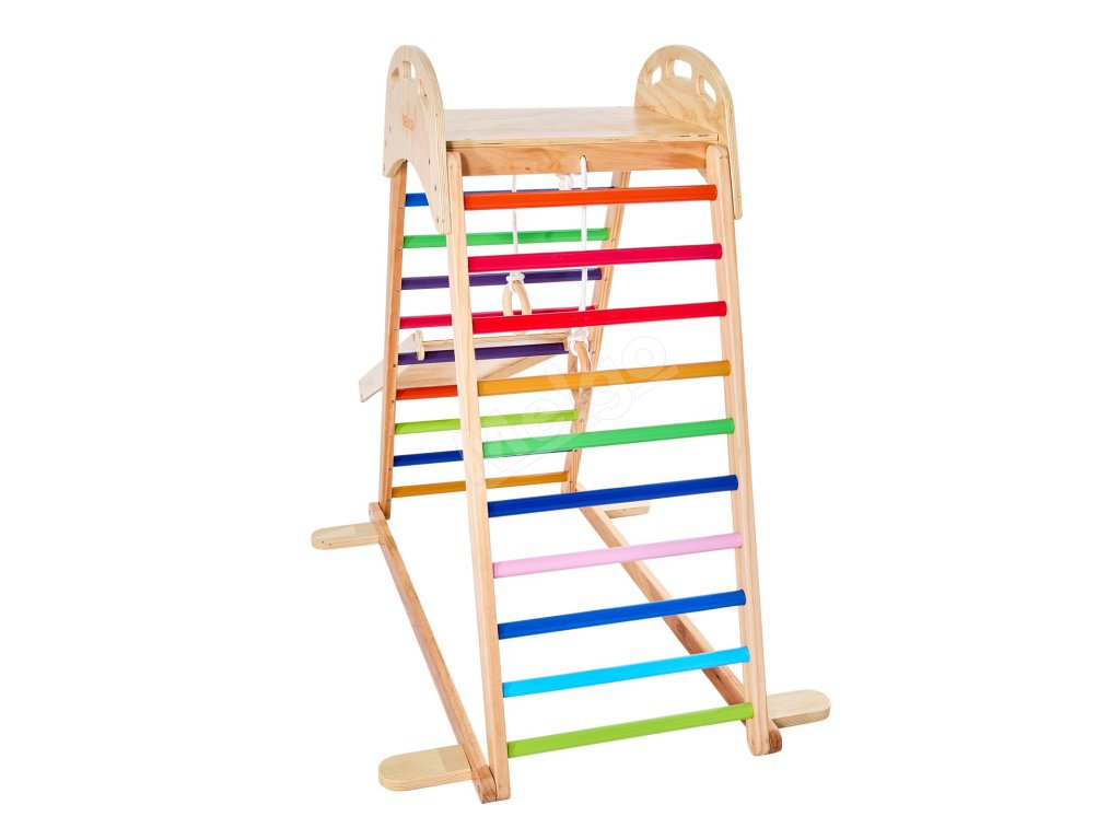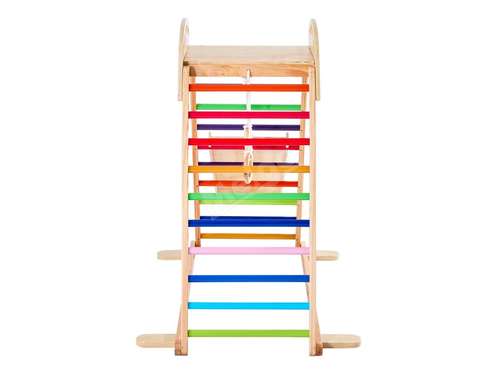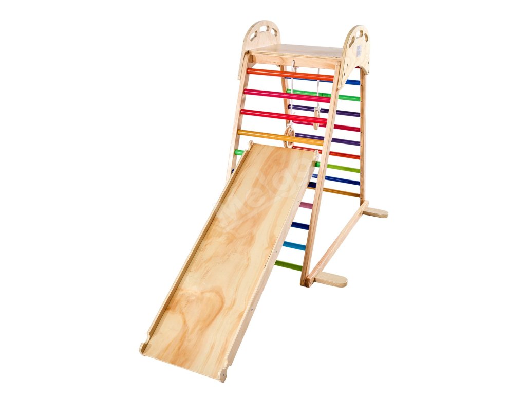 Detské vnútorné ihrisko 4 v 1, drevené, šmýkačka, rebrík, kruhy 100 kg