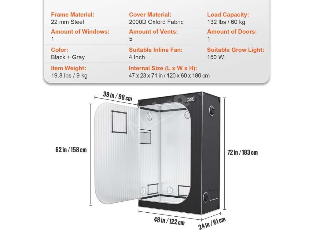 Kompaktný dizajn nerobí kompromisy na úkor funkčnosti. Je to skvelá voľba pre tých, ktorí majú obmedzený priestor. Pestovateľský stan VEVOR 2x4 je neuveriteľne šikovný na pestovanie v interiéri.