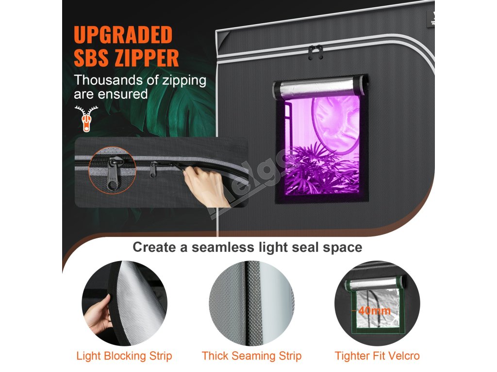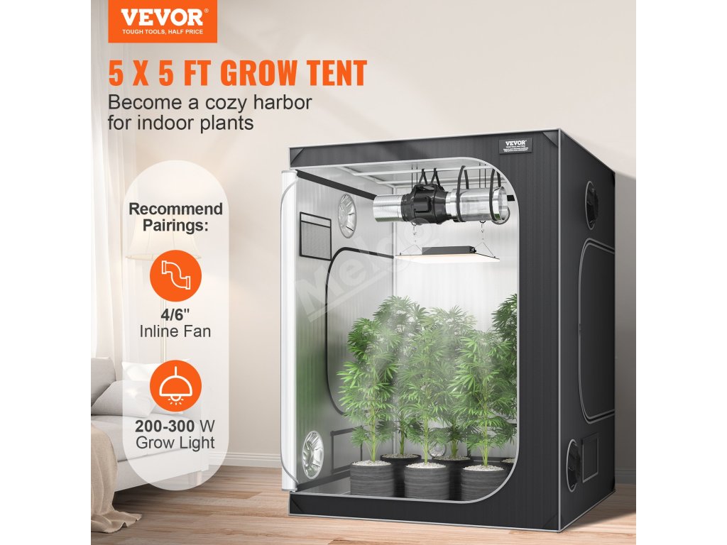 Pestovateľský stan VEVOR 5x5 je všestranný. Má viacero prístupových bodov na jednoduché používanie. Stan obsahuje porty na ventilátory, svetlá a hadice. To umožňuje flexibilné nastavenie a údržbu. Prístupové body zakrývame, aby sme zabránili úniku svetla a zaistili stabilitu vášho pestovateľského prostredia. Konštrukcia nášho stanu vyhovuje potrebám hydroponického pestovania. Systém viacerých prístupových bodov podporuje rôzne nastavenia zariadení. Svoju pestovateľskú miestnosť môžete ľahko spravovať. Sú ideálne pre začiatočníkov aj skúsených pestovateľov.
