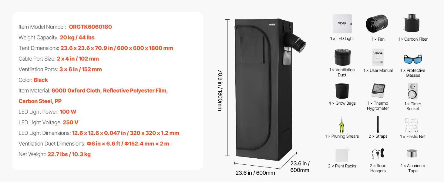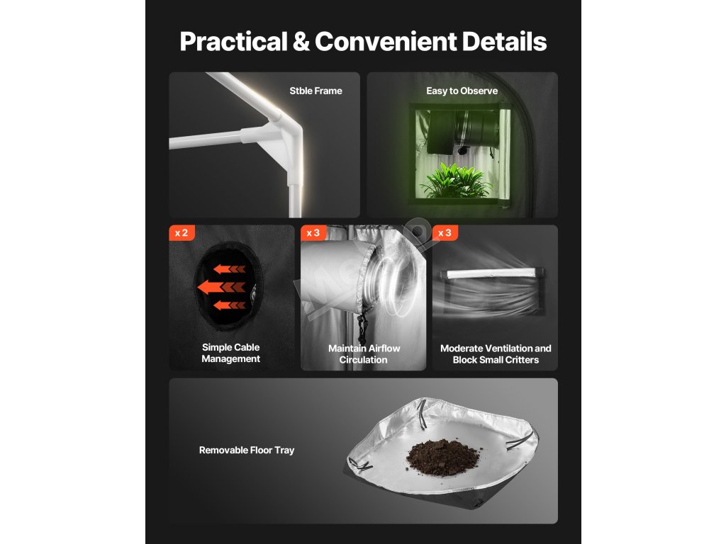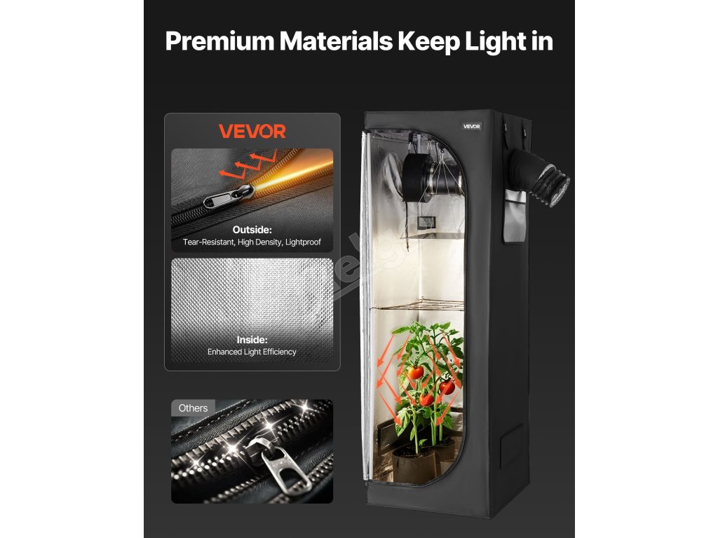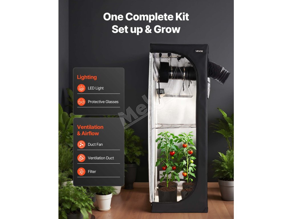 Táto kompletná súprava pre pestovanie v izbových stanoch poskytuje stabilné osvetlenie a kontrolu prostredia, takže je ideálna na pestovanie zeleniny, byliniek a rôznych rastlín. Aj v chladnejších ročných obdobiach náš pestovateľský stan zabezpečí, že vaše rastliny zostanú zdravé a budú sa im dariť po celý rok.