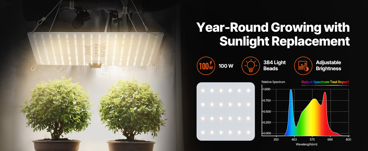 Vďaka vysokoúčinnému systému osvetlenia LED s plným spektrom pokrýva stan pre izbové rastliny základné vlnové dĺžky pre všetky fázy rastu - od klíčenia až po kvitnutie. Vďaka nízkemu tepelnému výkonu je vhodný na dlhodobé používanie v interiéri.