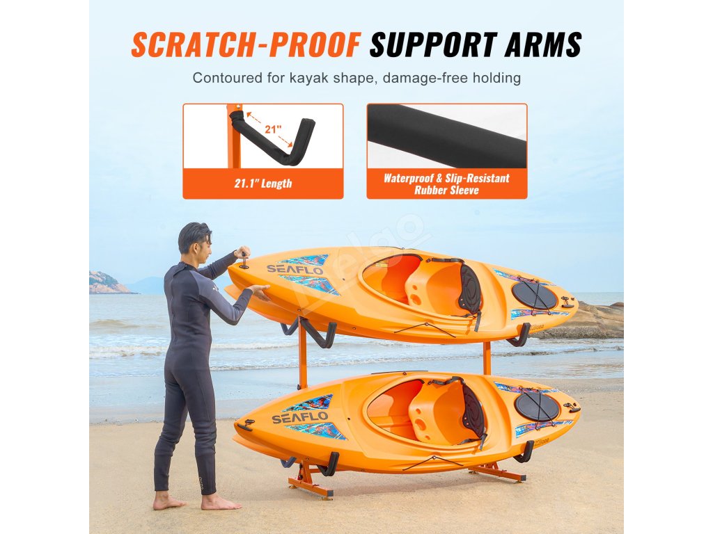 Prenosnosť voľne stojaceho stojana na kajak umožňuje jeho jednoduché premiestnenie v interiéri alebo exteriéri. Či už ho umiestnite do garáže, lodného doku, požičovne kajakov alebo kempu, tento stojan umožňuje prehľadné a bezpečné uskladnenie kajakov v rôznych prostrediach.