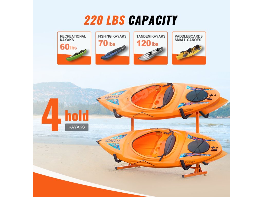 Stojan na 4 kajaky, polstrované ramená, nastaviteľný, nosnosť 220LBS