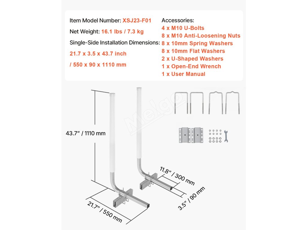Súprava tyčového vedenia prívesu na čln VEVOR má dve možnosti montáže s nastaviteľnými U-skrutkami, ktoré sa hodia na nosníky prívesov s rôznou šírkou. Táto konštrukcia zabezpečuje bezpečnú a stabilnú inštaláciu, čím sa predchádza uvoľneniu alebo kývaniu vodiacich tyčí počas prepravy.
