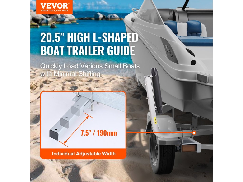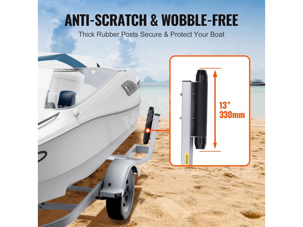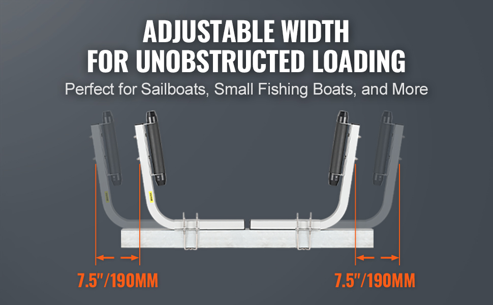 Nastaviteľná šírka umožňuje rýchle a bezproblémové nakladanie člnov rôznych veľkostí vrátane lyžiarskych člnov, plachetníc, malých rybárskych člnov a člnov, pričom zabezpečuje, že čln zostane v správnej polohe bez posunutia.