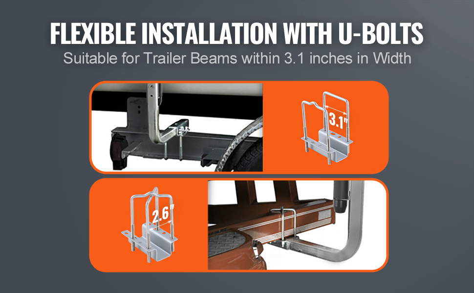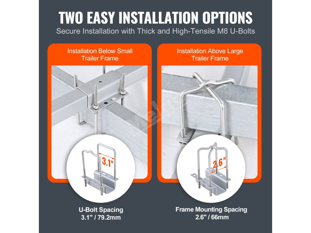Tieto dva spôsoby inštalácie sú vhodné pre prívesy s rôznymi šírkami rámu. Modernizovaný materiál z vysokopevnostnej ocele so zosilnením M8 zabezpečuje pevnú a stabilnú inštaláciu bez nadmerného pohybu alebo deformácie.