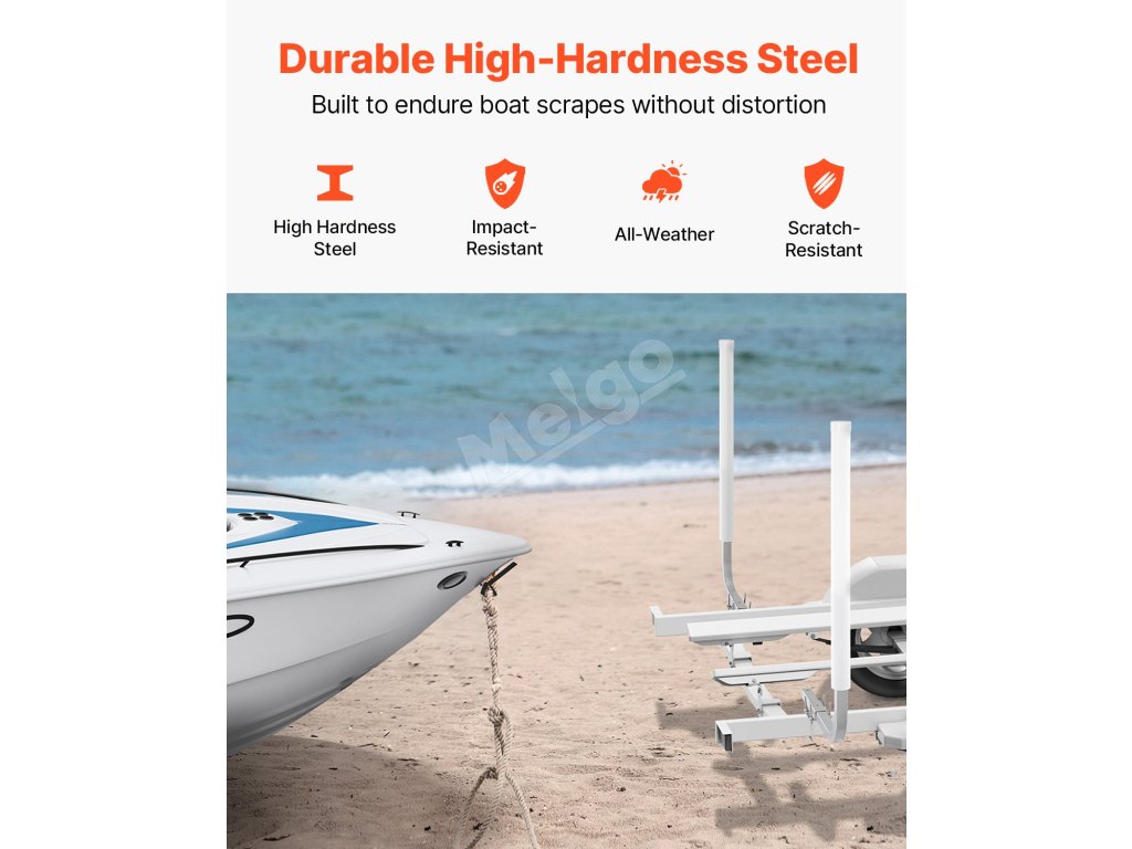 Tento vodiaci stĺpik prívesu, ktorý je vybavený konštrukciou s vysokým PVC stĺpikom, zaisťuje dobrú viditeľnosť blížiacich sa vozidiel. Ochrana z PVC v miestach kontaktu pomáha minimalizovať poškriabanie povrchu lode a tiež absorbuje nárazy, vďaka čomu je nakladanie lode plynulejšie a efektívnejšie.