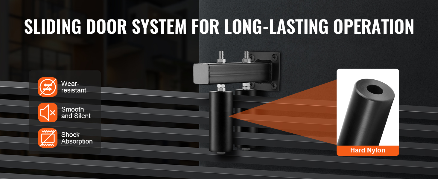 Nielenže znižuje trenie a opotrebovanie, ale nylonový materiál tiež poskytuje vynikajúcu absorpciu nárazov, čím predlžuje životnosť celého systému posuvných dverí a ušetrí vás od častej výmeny dielov.