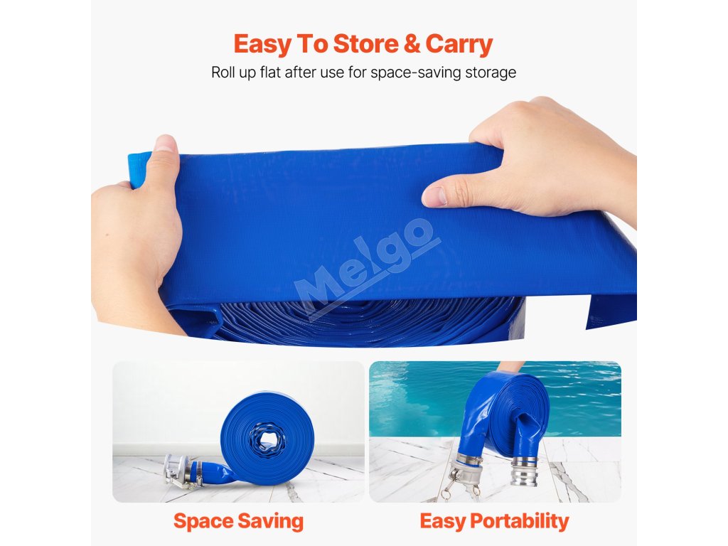 Naša vrstvená opletená súprava hadice na spätný výplach 3 palce x 50 stôp je vyrobená z pružného PVC, aby sa zabránilo únikom a roztrhnutiu, a priložené svorky zabezpečujú jednoduchú inštaláciu a inštaláciu. Dá sa ohýbať, skladať a zrolovať na jednoduché skladovanie a prenášanie a hodí sa na mnohé scény na rôzne účely.