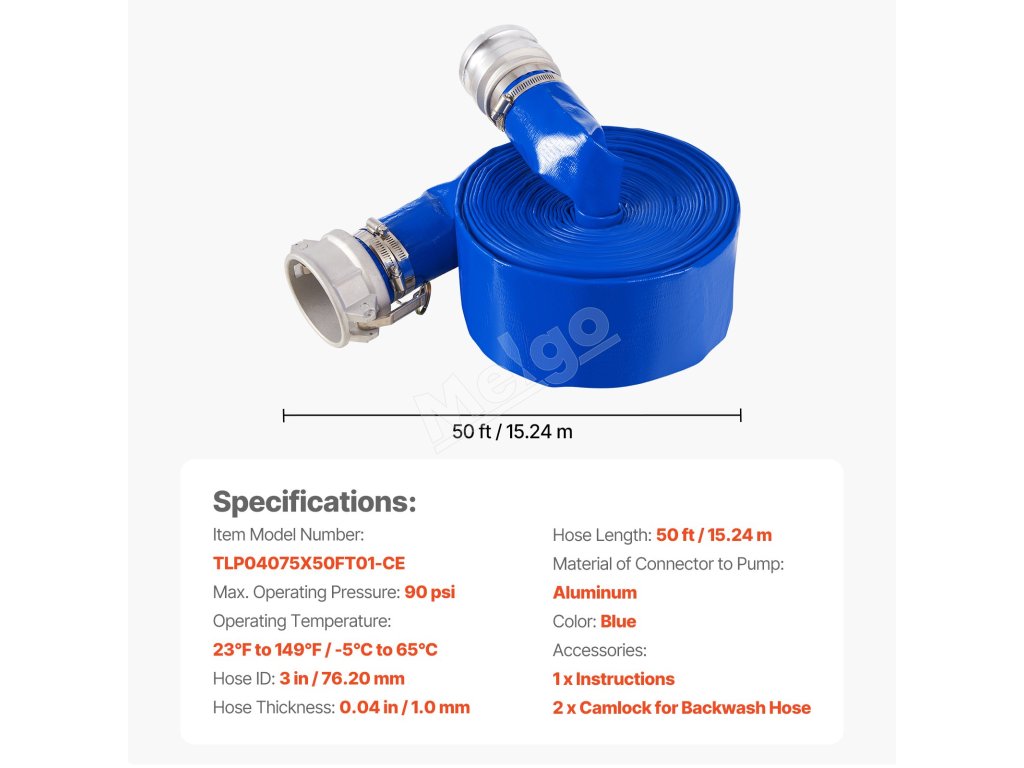 Hadica na spätné umývanie VEVOR 3 palce x 50 stôp