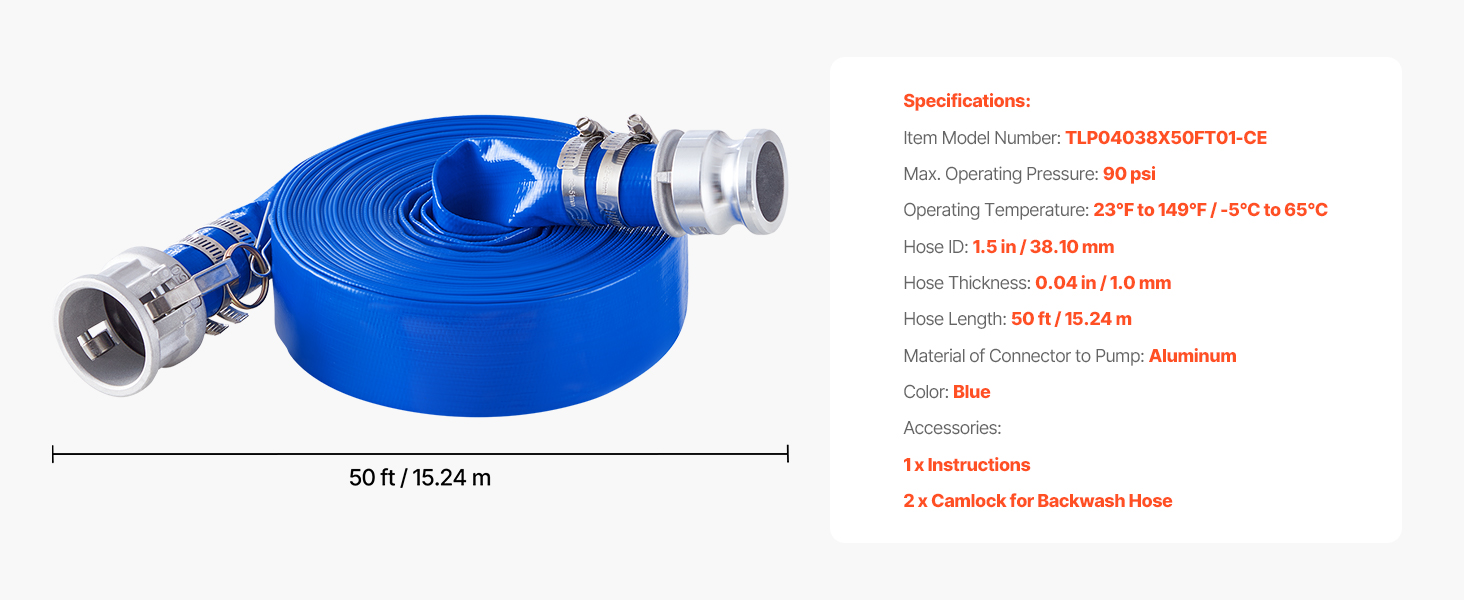 Hadica na spätné umývanie VEVOR 1,5 palca x 50 stôp