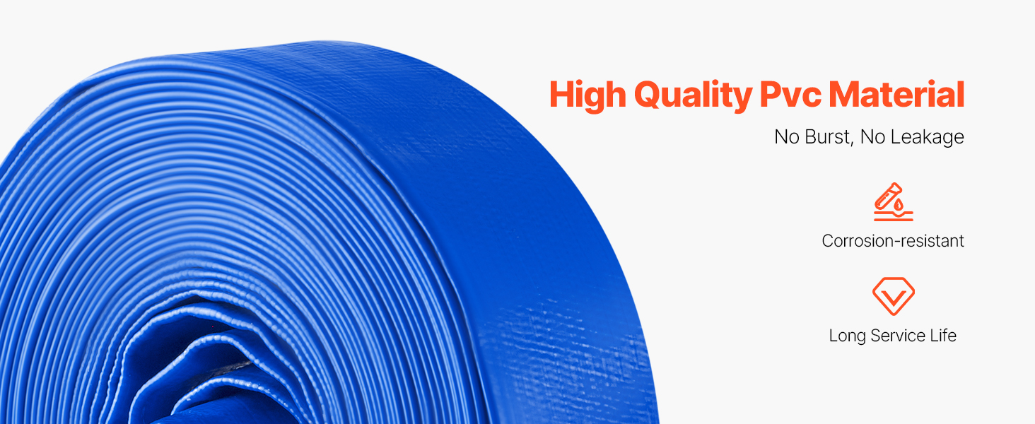 Súprava hadice na spätné preplachovanie je vyrobená zo spoľahlivého vysokokvalitného PVC, ktoré vykazuje vynikajúce vlastnosti proti prasknutiu a úniku.