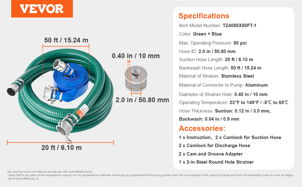 Súprava sacích hadíc VEVOR pre vodné čerpadlo 2 palce x 50 stôp