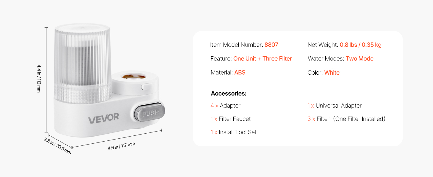 Tento vodovodný filter zlepšuje chuť a zápach vody, vďaka čomu je vhodná na pitie, varenie, čistenie, kúpanie a ďalšie účely.