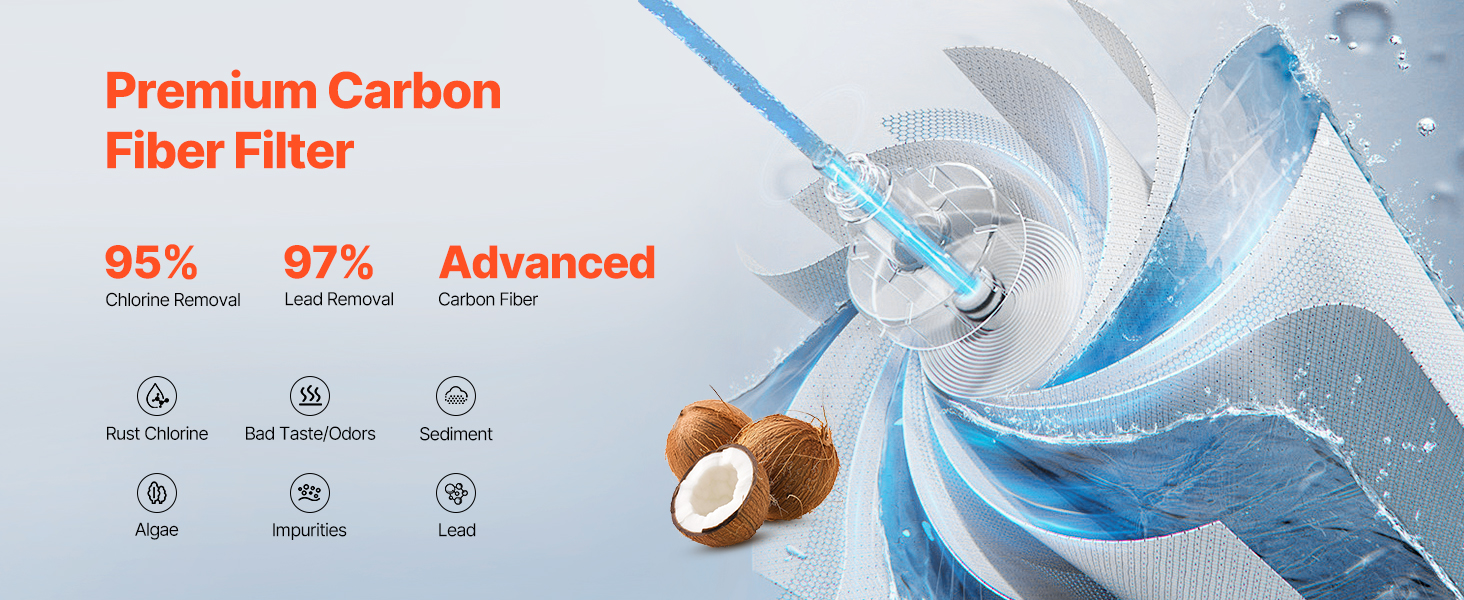 Vybavený filtrami z uhlíkových vlákien odstraňuje z vody zápach chlóru a účinne filtruje nečistoty, čím vám poskytuje čistú vodu.
