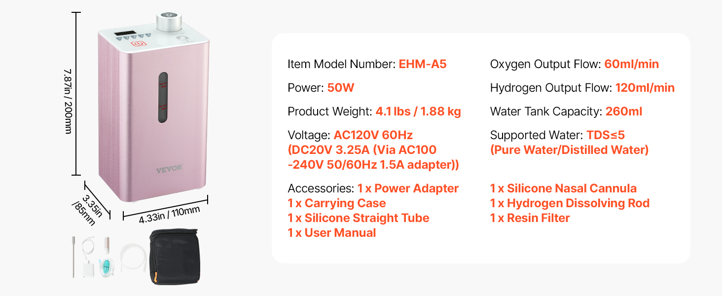 Generátor vodíkového inhalátora váži len 4,1 lbs / 1,88 kg, takže sa ľahko prenáša. Dodáva sa so zabudovanou dobíjateľnou lítiovou batériou, ktorá ponúka pohodlie pri používaní na cestách.
