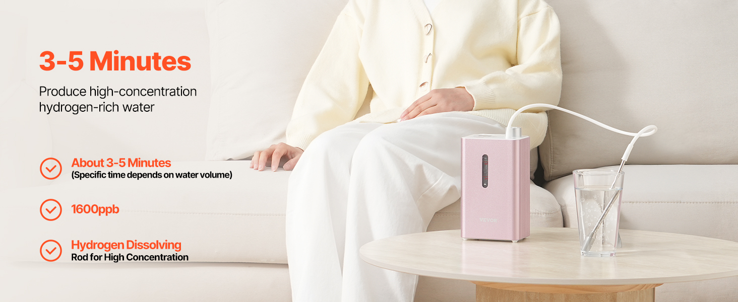 Náš vodíkový inhalátor možno používať s tyčinkou na rozpúšťanie vodíka na výrobu vody bohatej na vodík s vysokou koncentráciou. Čas rozpúšťania závisí od objemu vody a požadovanej koncentrácie. (Rozpustenie plynu s koncentráciou 1200 - 1600 pb do 300 ml vody trvá zvyčajne 3 - 5 min.)