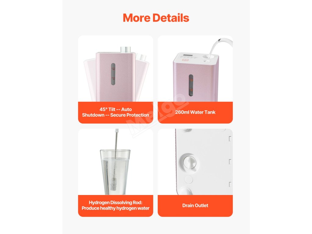 Vodíkový inhalačný prístroj je vybavený dvoma portmi a ponúka tri režimy výstupu: H2/O2/H2+O2, vďaka čomu ho môžu súčasne používať 1-2 osoby. Pracuje s nízkou hlučnosťou, čo zaručuje, že nebude rušiť váš odpočinok.
