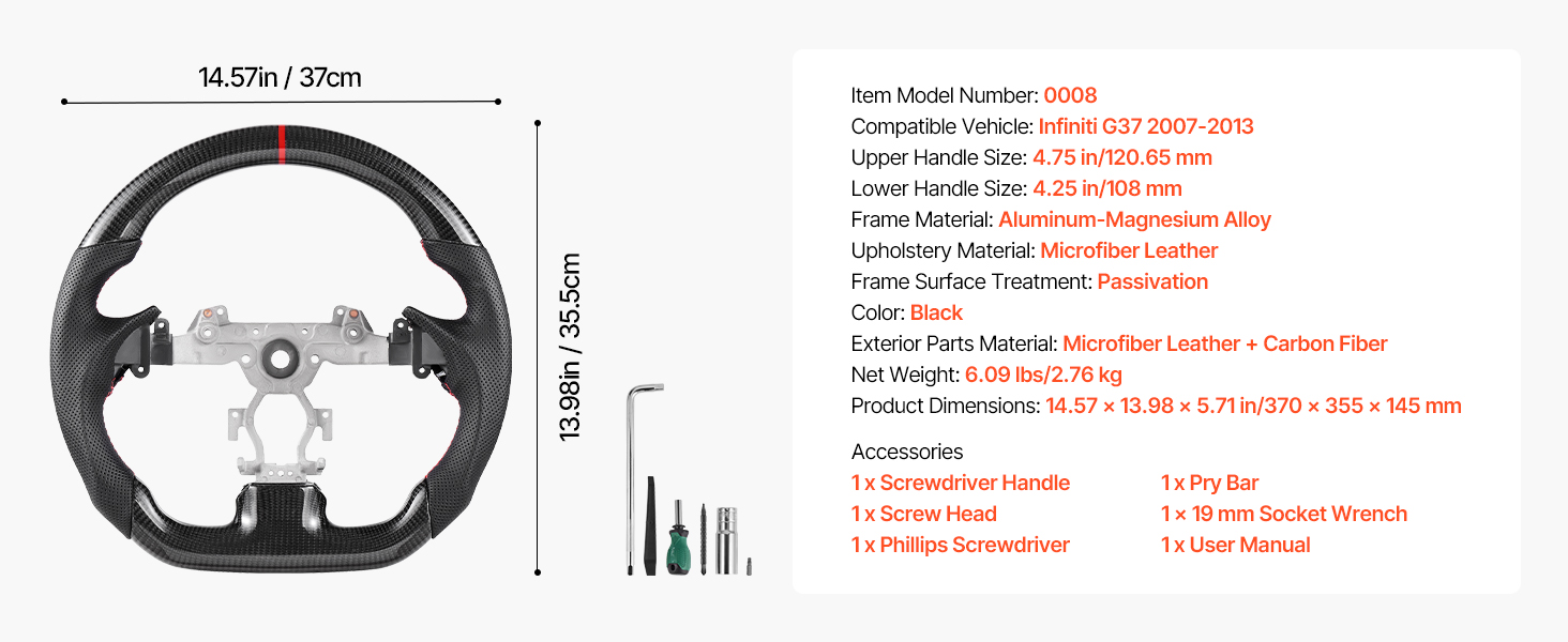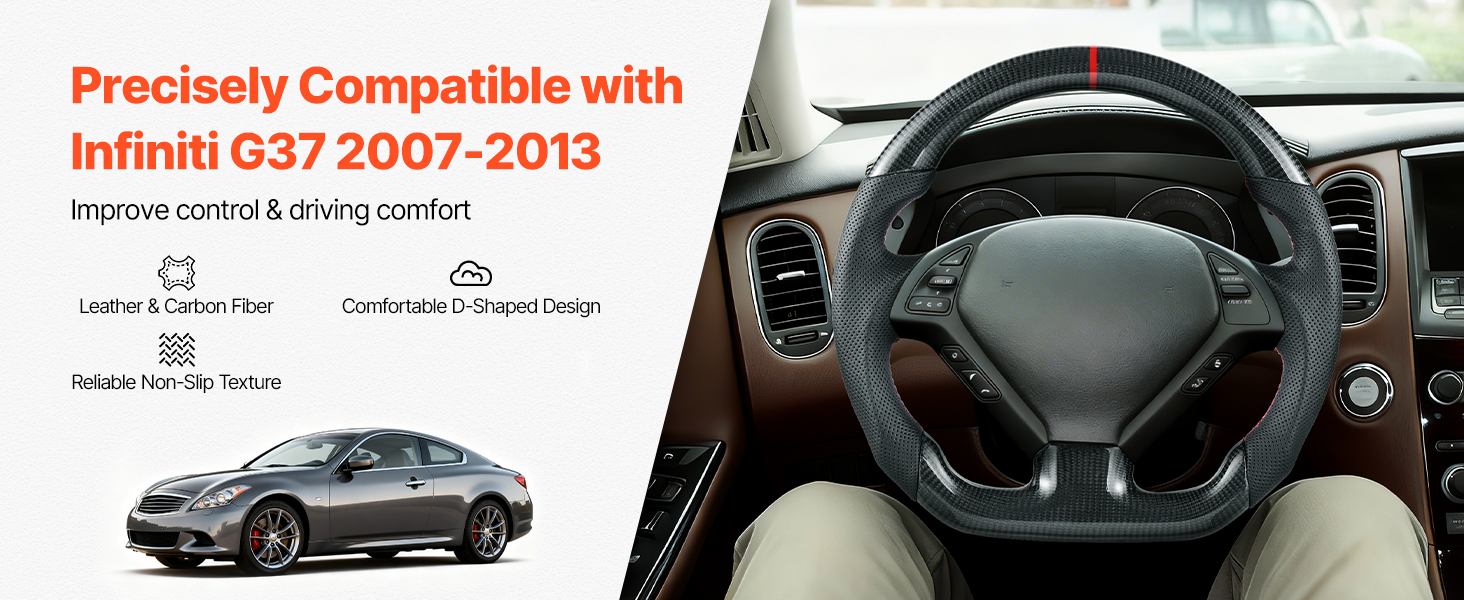 Tento volant je určený pre Infiniti G37 2007-2013, presne sa prispôsobí vášmu vozidlu a zlepší ovládateľnosť a pohodlie pri jazde. Vyrobený z kože a uhlíkových vlákien, dizajn v tvare písmena D s protišmykovou textúrou zaručuje istú a pohodlnú jazdu.