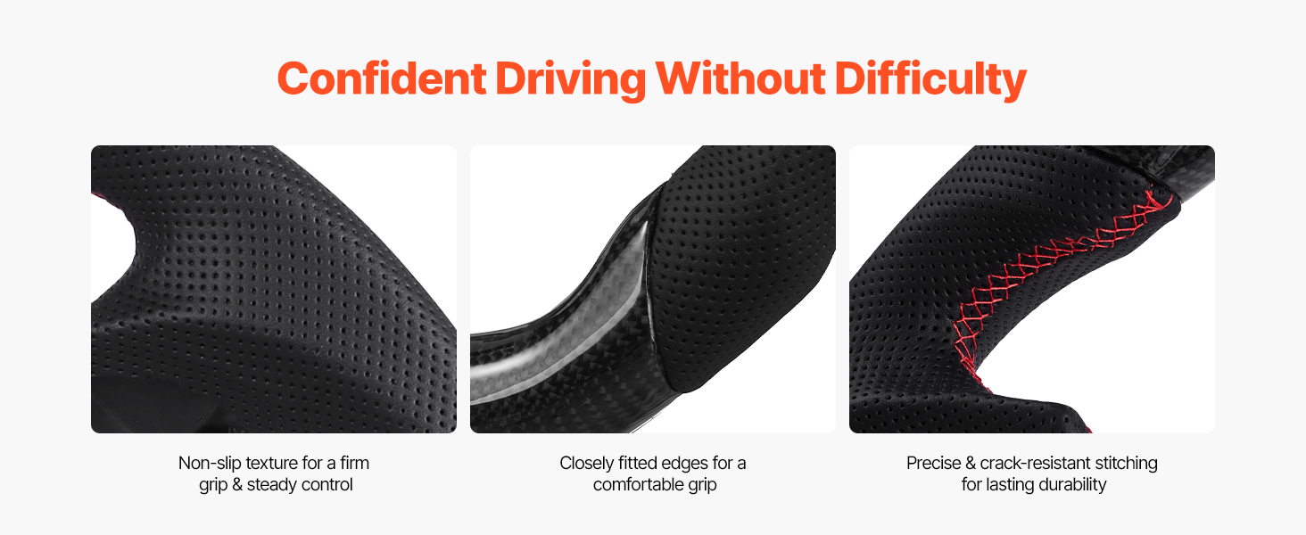 Náš náhradný volant vám umožní jazdiť s istotou. Protišmyková textúra umožňuje ľahké a pevné uchopenie, čím sa zabráni skĺznutiu počas jazdy; pevne priliehajúce okraje zabezpečujú pohodlné uchopenie; precízne šitie odoláva praskaniu, čo zaručuje dlhodobú trvanlivosť.