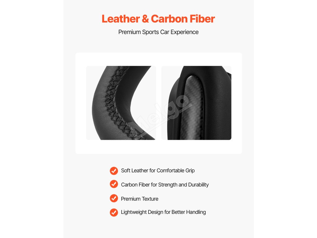 Premeňte svoj zážitok z jazdy. Tento volant z pravého karbónu je vybavený priedušnou kožou z mikrovlákna, ktorá poskytuje jemný dotyk, odolnosť proti opotrebovaniu a poškriabaniu a ľahko sa čistí a udržiava. Jeho dizajn v tvare písmena D zväčšuje priestor pre nohy, vďaka čomu je nastupovanie a vystupovanie z vozidla pohodlné.