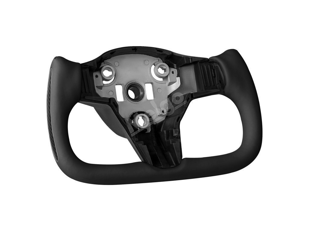 Volant pre model 3 2016–2023 karbón d-tvar s vyhrievaním, čierny