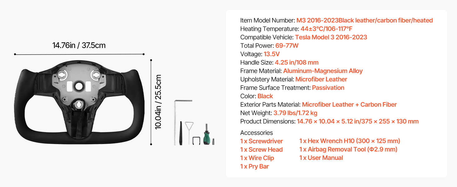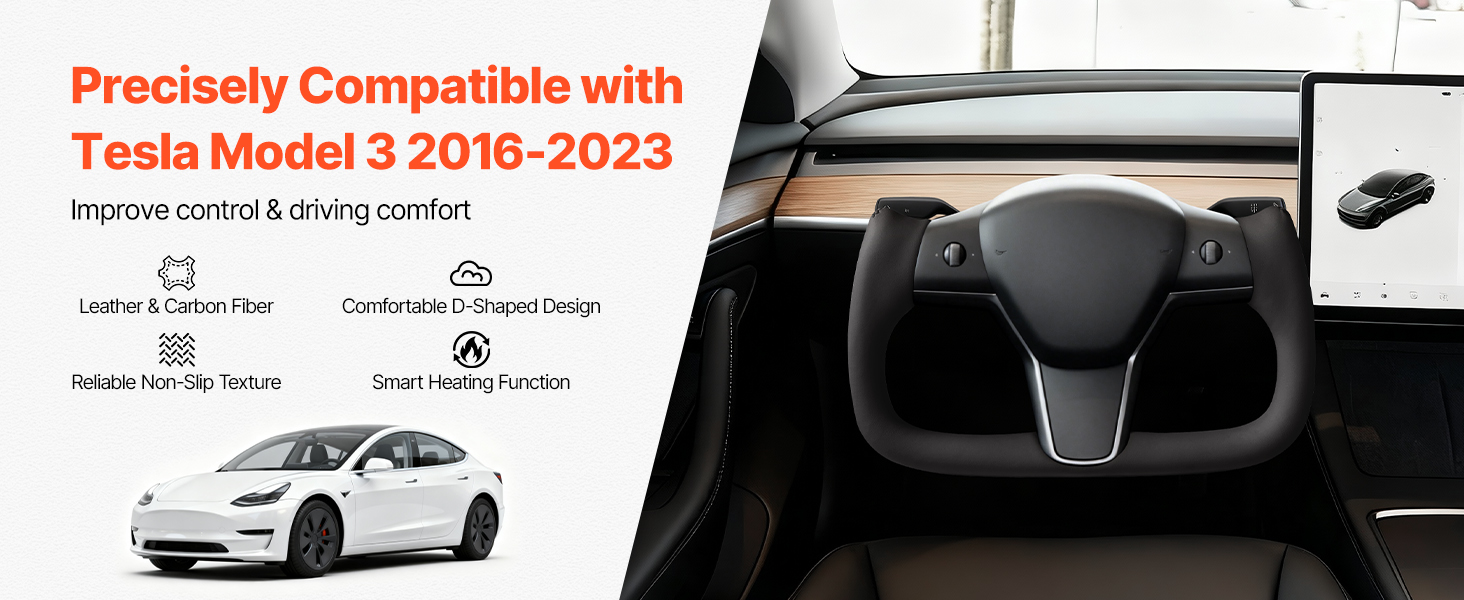 Tento volant je navrhnutý pre Tesla Model 3 2016-2023, presne sa prispôsobí vášmu vozidlu a zlepší ovládateľnosť a komfort jazdy. Vyrobený z kože a uhlíkových vlákien, dizajn v tvare písmena D s protišmykovou textúrou zaručuje istú a pohodlnú jazdu.