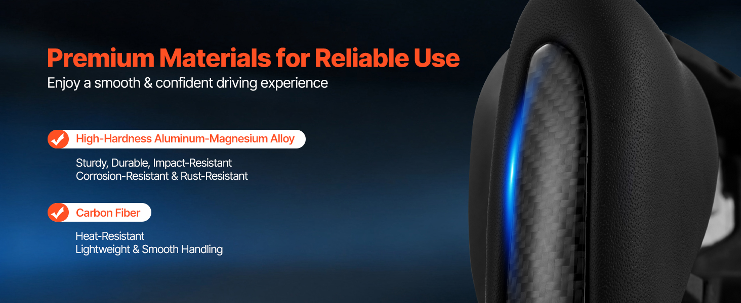 Náš volant z uhlíkových vlákien je vyrobený z vysoko tvrdej zliatiny hliníka a horčíka, ktorá je pevná, odolná, nárazuvzdorná a odolná voči korózii. Materiál z uhlíkových vlákien je odolný voči vysokým teplotám a ľahký, čím zlepšuje jazdné vlastnosti a zvyšuje spoľahlivosť jazdy.