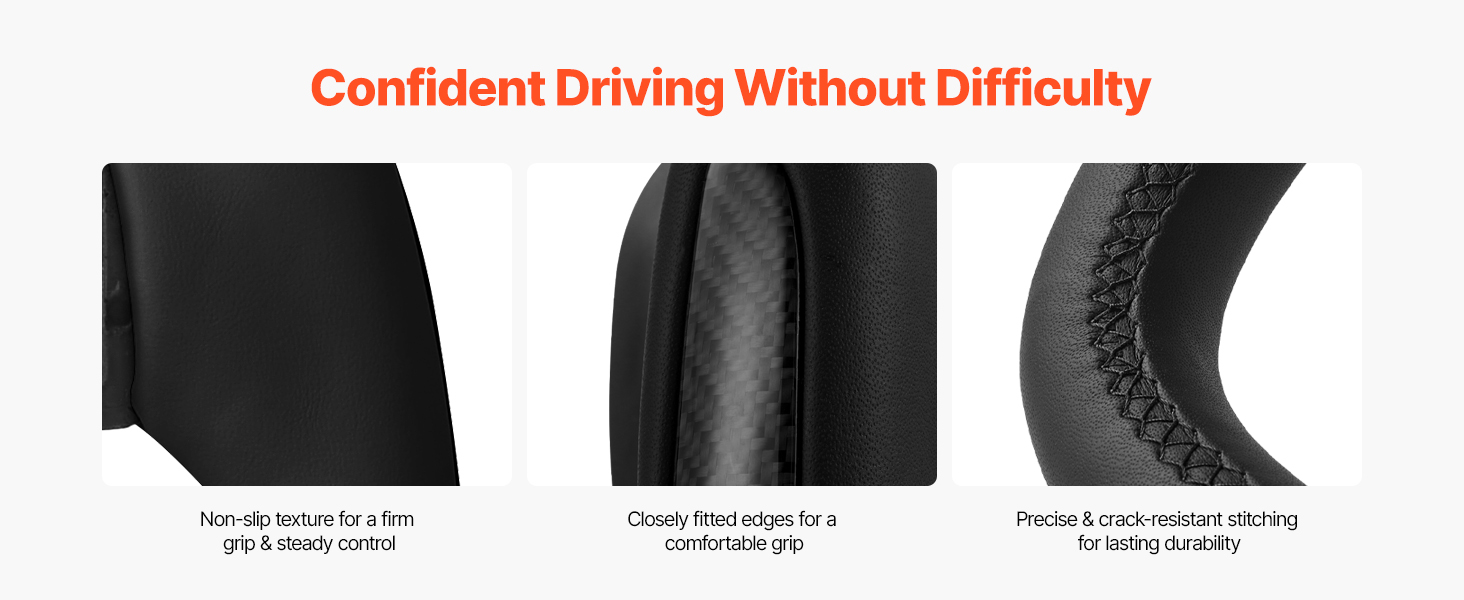 Náš náhradný volant vám umožní jazdiť s istotou. Protišmyková textúra umožňuje ľahké a pevné uchopenie, čím sa zabráni skĺznutiu počas jazdy; pevne priliehajúce okraje zabezpečujú pohodlné uchopenie; precízne šitie odoláva praskaniu, čo zaručuje dlhodobú trvanlivosť.