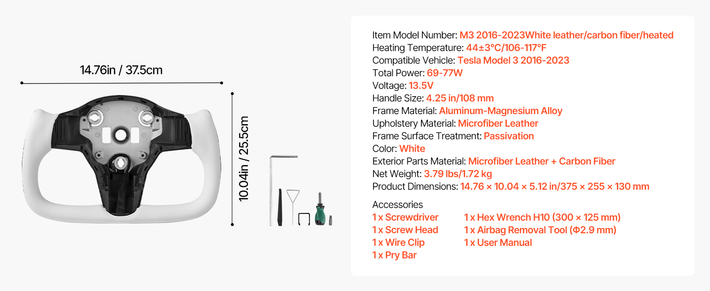 | Číslo modelu položky | M3 2016-2023Biela koža/karbónové vlákna/vyhrievanie |