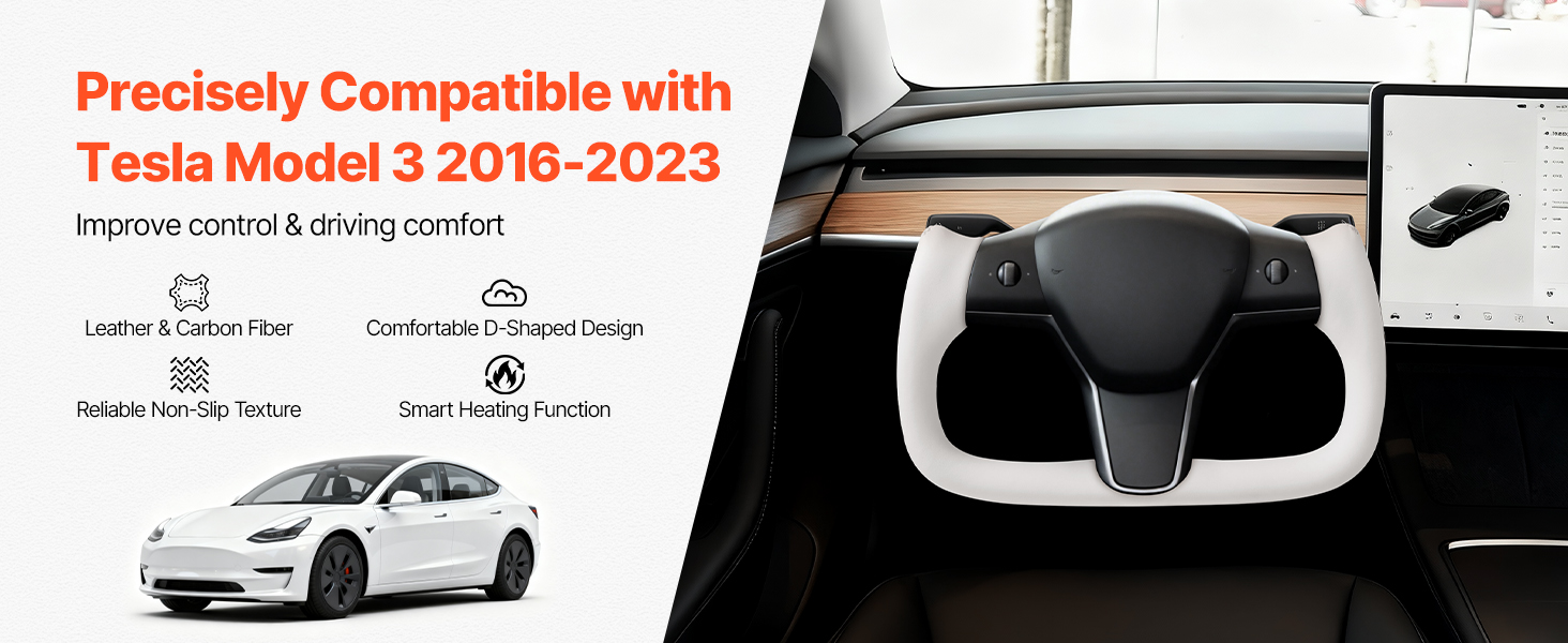 Tento volant je navrhnutý pre Tesla Model 3 2016-2023, presne sa prispôsobí vášmu vozidlu a zlepší ovládateľnosť a komfort jazdy. Vyrobený z kože a uhlíkových vlákien, dizajn v tvare písmena D s protišmykovou textúrou zaručuje istú a pohodlnú jazdu.