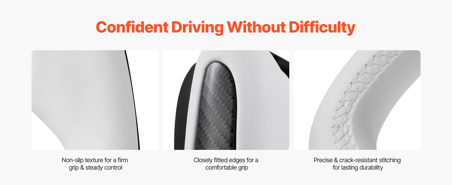 Náš náhradný volant vám umožní jazdiť s istotou. Protišmyková textúra umožňuje ľahké a pevné uchopenie, čím sa zabráni skĺznutiu počas jazdy; pevne priliehajúce okraje zabezpečujú pohodlné uchopenie; precízne šitie odoláva praskaniu, čo zaručuje dlhodobú trvanlivosť.