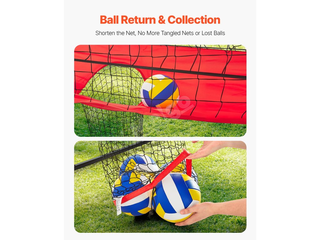 Skrátená volejbalová sieť smeruje lopty do sieťového vrecka, čím sa eliminujú zatúlané údery. Lopty môžete zbierať bez námahy.