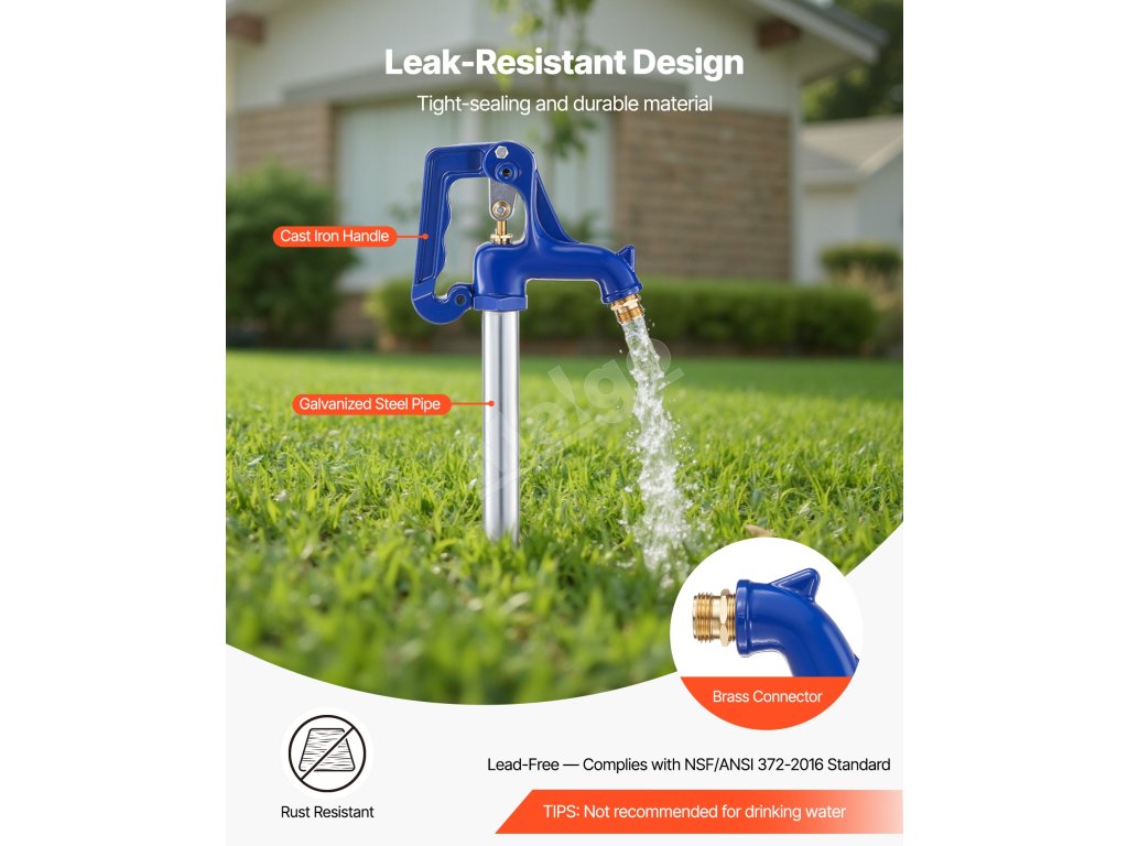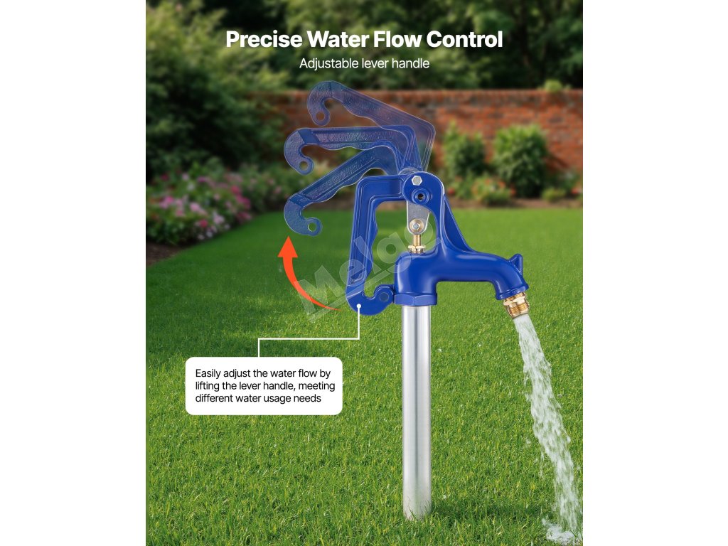 Dvorný mrazuvzdorný hydrant VEVOR má celkovú dĺžku 4,2FT (1280 mm), hĺbku zakopania 24 palcov a konštrukciu obtokového ventilu, vďaka ktorej voda plynule prúdi aj v mrazivých podmienkach. Odolná konštrukcia znižuje únik vody a zaručuje trvanlivosť, je ideálny na zavlažovanie záhrady, čistenie auta a zavlažovanie farmy.