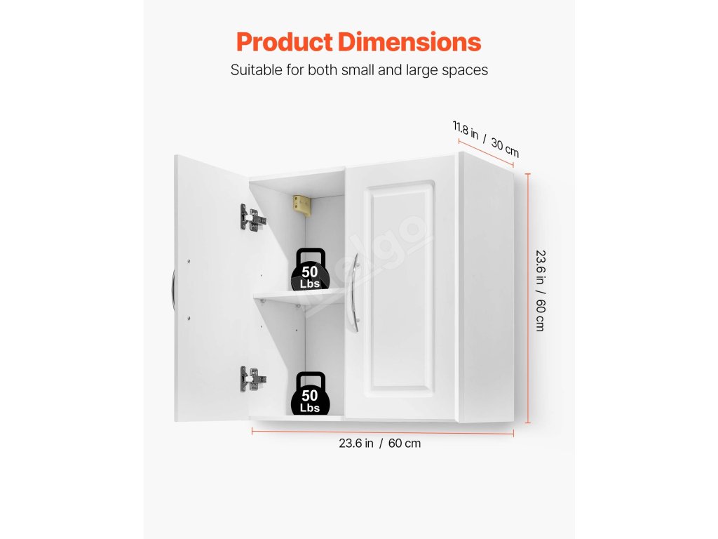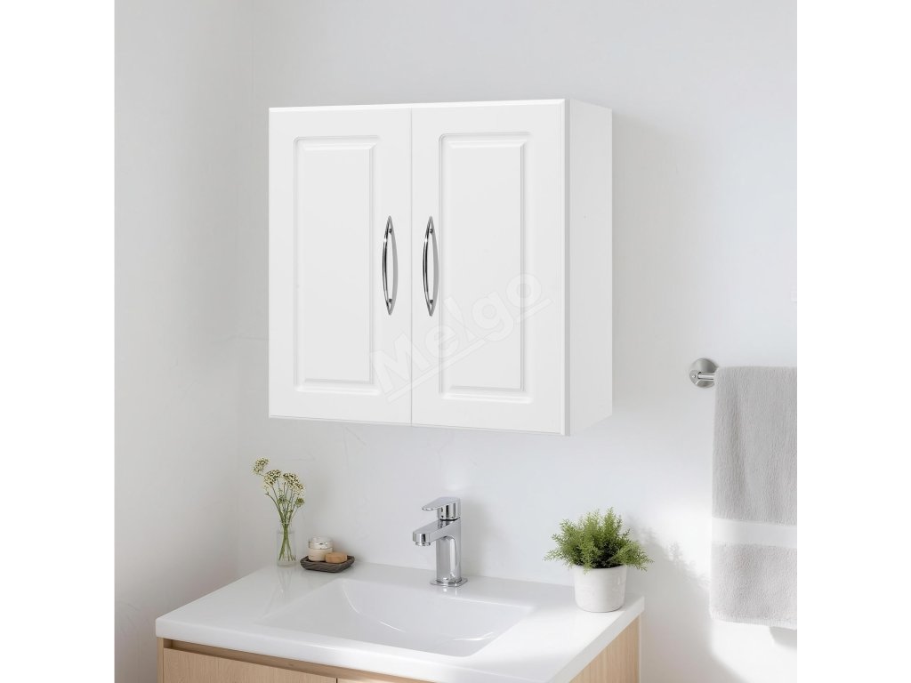 Nástenná skrinka, 2 dvierka, nastaviteľná polica, 30×60×60 cm, biela