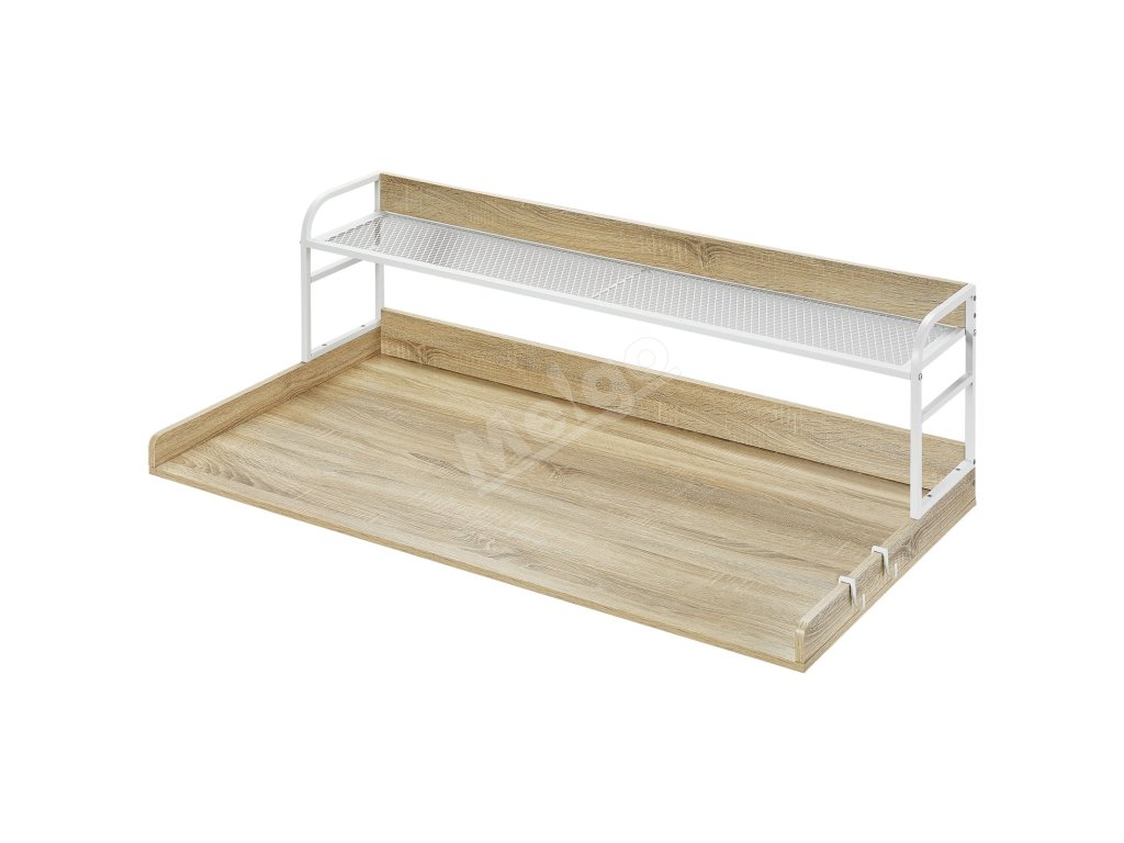 Tento priateľský materiál vyrobený z vysokokvalitného dreva P2 CARB s povrchom hrubým 15 mm je odolný voči teplu, vode a poškriabaniu a unesie až 250 kg. Je vybavený praktickými bočnými háčikmi na zavesenie drobných predmetov, je skonštruovaný tak, aby vydržal každodenné používanie a zabezpečil dlhodobú stabilitu.