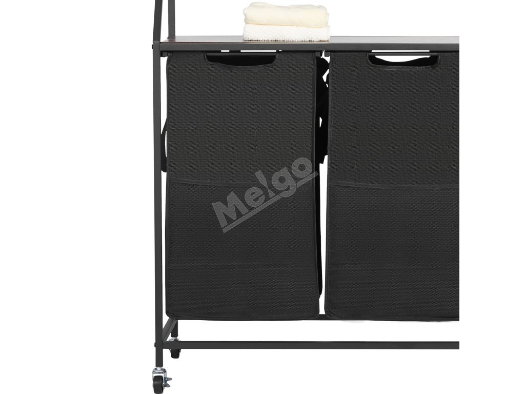 Dvojkomorový kôš na prádlo, kovový rám, drevená doska, 600D vrecká