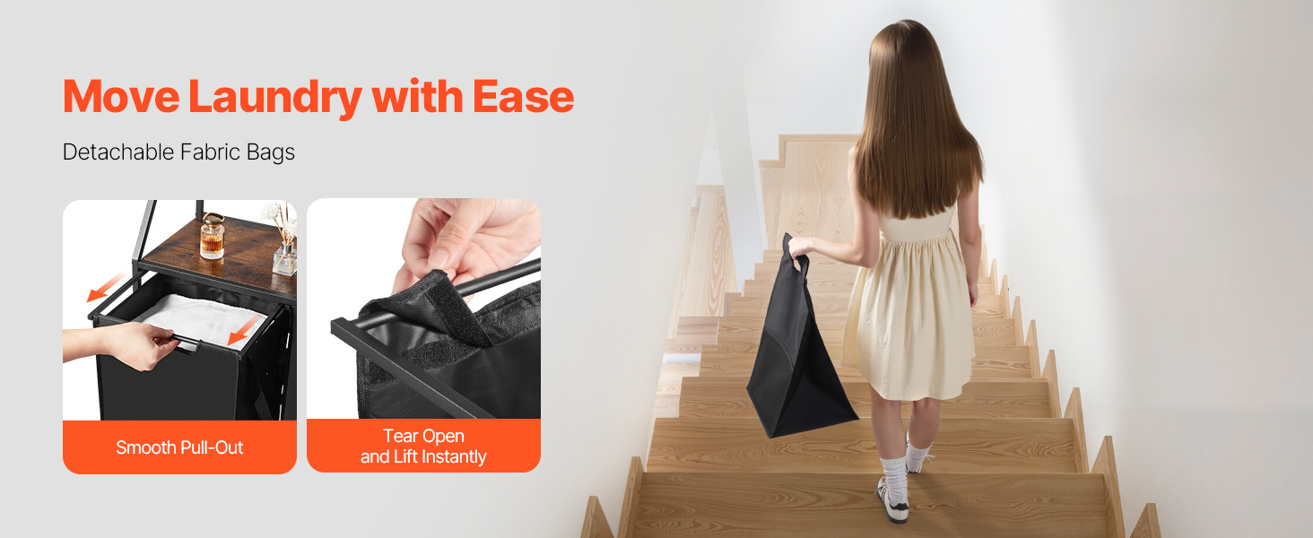 Odnímateľné vrecia s hladkým výsuvným dizajnom a rukoväťami uľahčujú prenášanie oblečenia do práčky na jednu cestu - šetria čas a námahu.