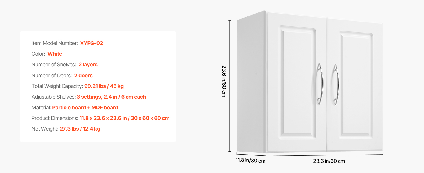Táto nástenná skrinka na bielizeň je vyrobená z drevotrieskových dosiek a MDF, je odolná proti poškriabaniu, vlhkosti a má vysokú životnosť. Nástenná inštalácia s montážnymi konzolami zaisťuje vynikajúcu stabilitu a zabraňuje prevráteniu.