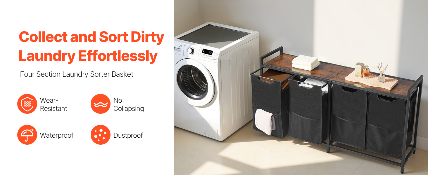 Odnímateľné vrecia s hladkým výsuvným dizajnom a rukoväťami uľahčujú prenášanie oblečenia do práčky na jednu cestu - šetria čas a námahu.