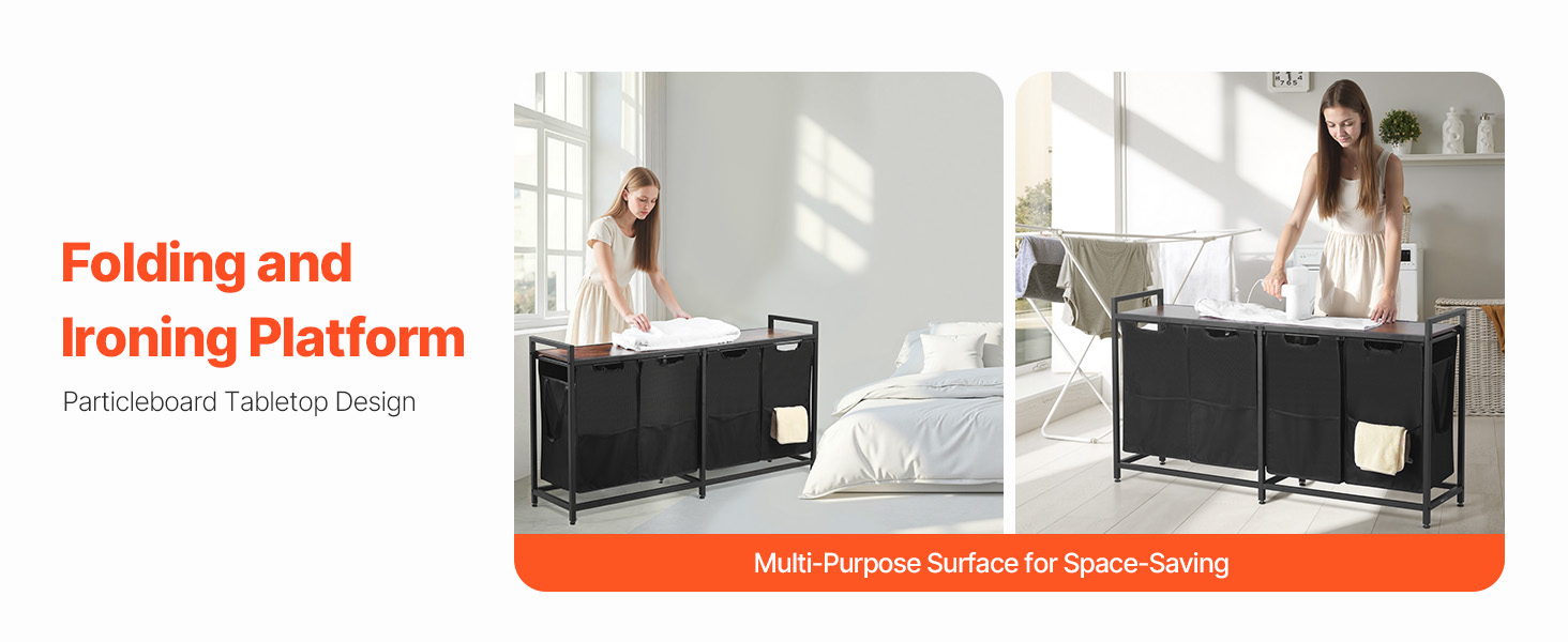 Silná drevotriesková doska hornej časti košového triediča na bielizeň sa pod váhou neohne - ideálna na skladanie, žehlenie alebo uskladnenie.