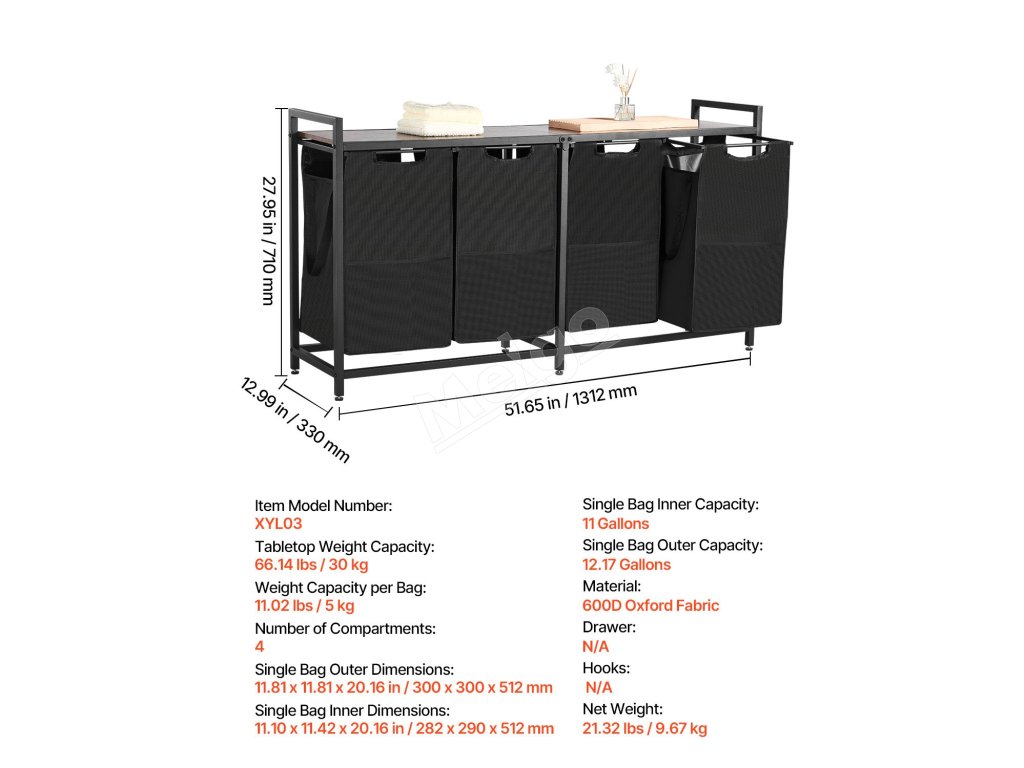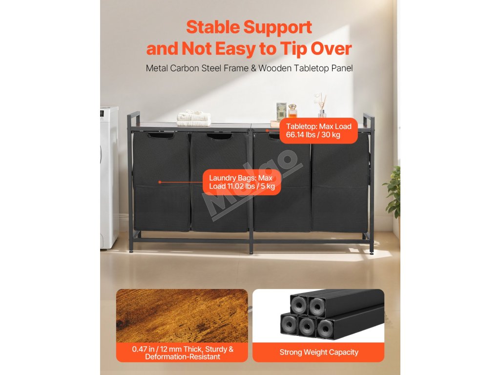 Zostavený so zosilneným kovovým rámom pre dlhodobú stabilitu a odolnosť. Štyri nastaviteľné nožičky udržia kôš stabilný na nerovných podlahách. Obsahuje bočné vrecko na usporiadanie drobných predmetov, ako sú ponožky, vrecká na bielizeň - udržiava váš priestor na pranie čistý a efektívny.