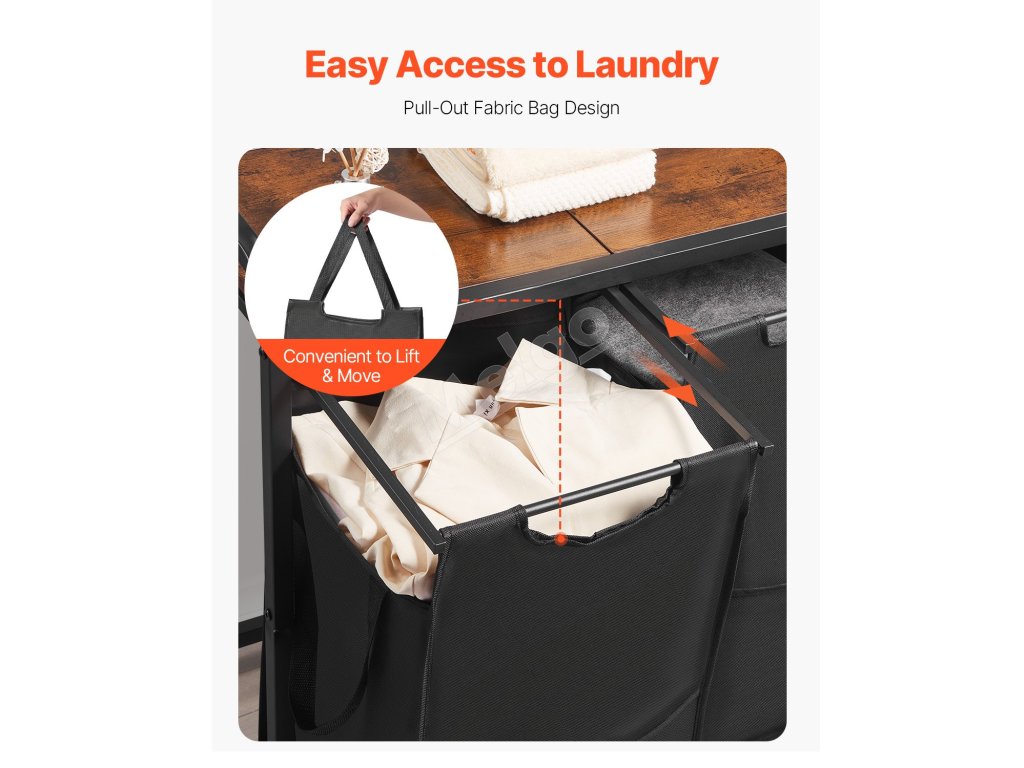 Odnímateľné vrecia s hladkým výsuvným dizajnom a rukoväťami uľahčujú prenášanie oblečenia do práčky na jednu cestu - šetria čas a námahu.
