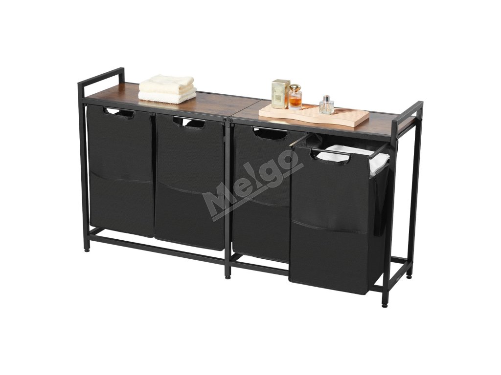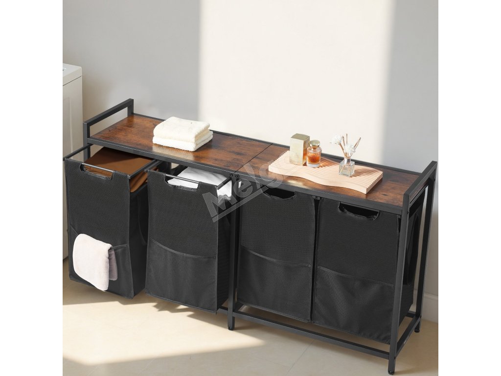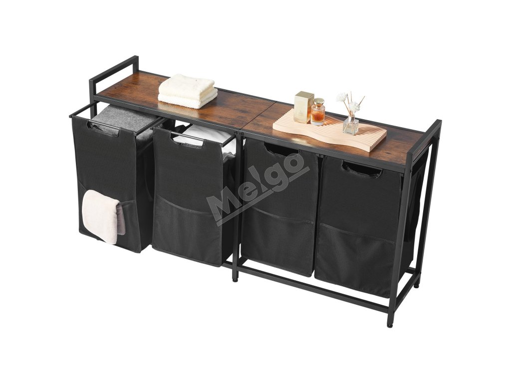 Stojan na triedenie bielizne 4 sekcie, kovový rám a drevený vrch